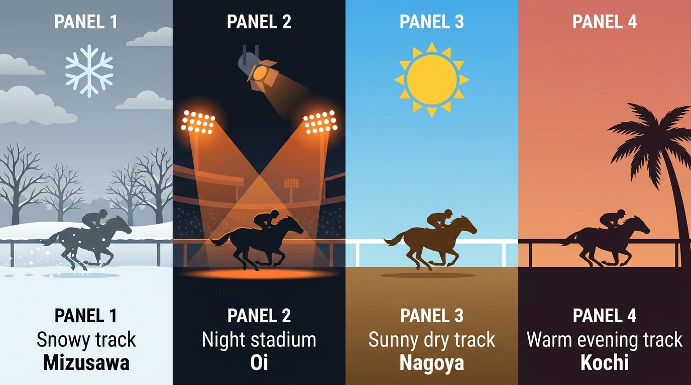 - 名古屋 → 乾燥高速ダート・逃げ先行優位・デイ開催