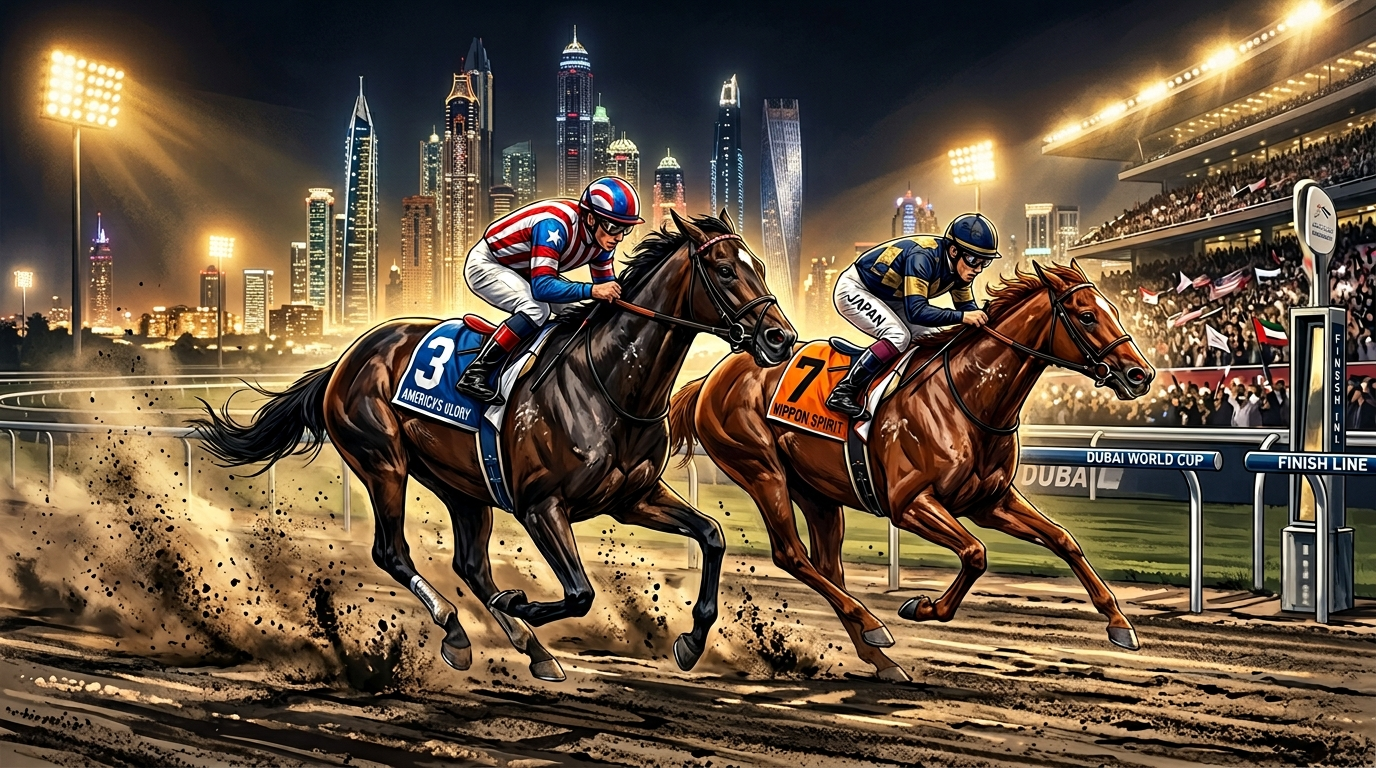 2026年3月28日(現地時間)、メイダン競馬場で行われた第30回ドバイワールドカップ。9頭立て、1着賞金696万ドル(約11億円)の大一番で、フォーエバーヤング(牡5、矢作芳人厩舎、坂井瑠星騎手)は2着に終わった。
