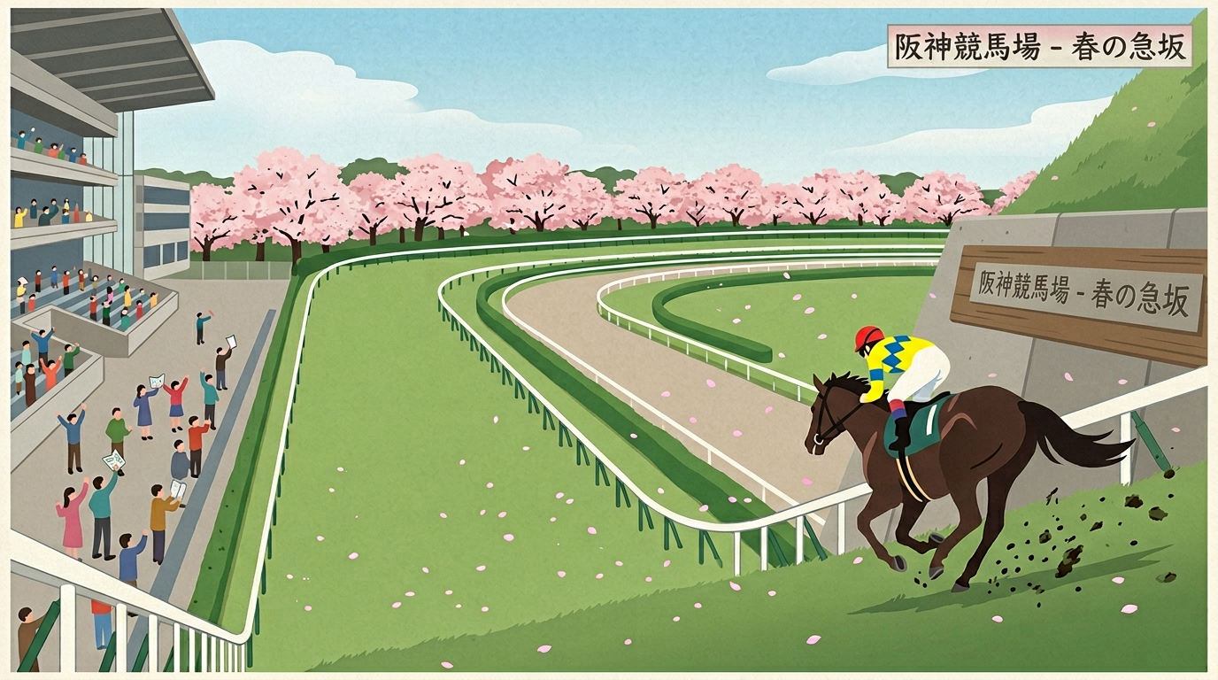 阪神競馬場は、芝の内回り・外回りで求められる技術がガラッと変わるコースだ。さらにダートを加えると、騎手ごとの得意不得意がかなりはっきり出る。直線356m(内回り)vs 473m(外回り)、そしてゴール前の急坂(高低差1.8m)。この構造が「乗る人間」で着順をひっくり返す。
