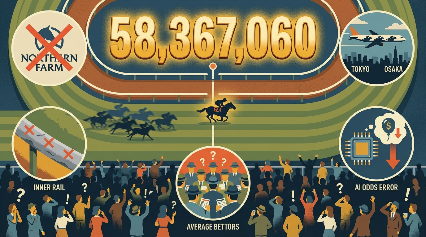 近年、多くのファンがAI予想を使い「期待値の高い馬」に集中投票する。するとデータから外れた馬のオッズが極端に跳ね上がる(過小評価される)現象が加速。少しでも未知数要素を持つ馬が激走すると、オッズが跳ね上がっていた分だけ配当が天文学的な数字になる。